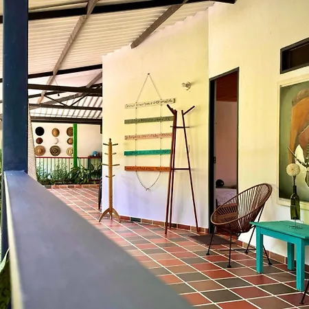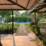 This Villavicencio accommodation is equipped with a microwave oven and a refrigerator for self-catering in an outdoor dining area.